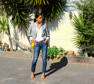 I am an absolute ‘girly’ girl and LOVE my dresses and skirts, but I also enjoy a great fitting denim and super sleek suit! So if preppy is your ‘thang’ why not play up your pinstripe blazer with a supercool distressed denim?